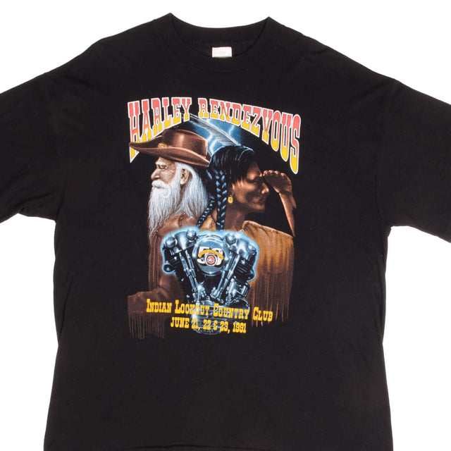 Vintage Harley Davidson Rendez Vous Tee Shirt June 21, 22 & 23 1991 Size Large Made In USA With Single Stitch Sleeves