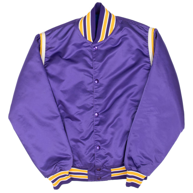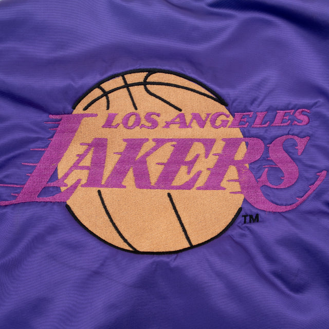 VINTAGE NBA LOS ANGELES LAKERS PURPLE SATIN BOMBER JACKET 1980S SMALL