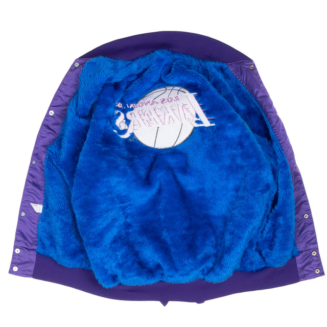 Vintage Nba Los Angeles Lakers Purple Satin Bomber Jacket faux fur liner 1980S Size Small