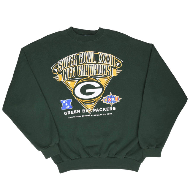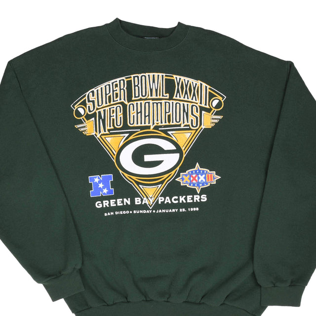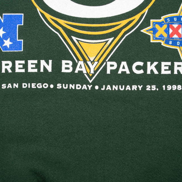 Vintage NFL Green Bay Packers Super Bowl XXXII 1998 Green Sweatshirt XL Made In Usa