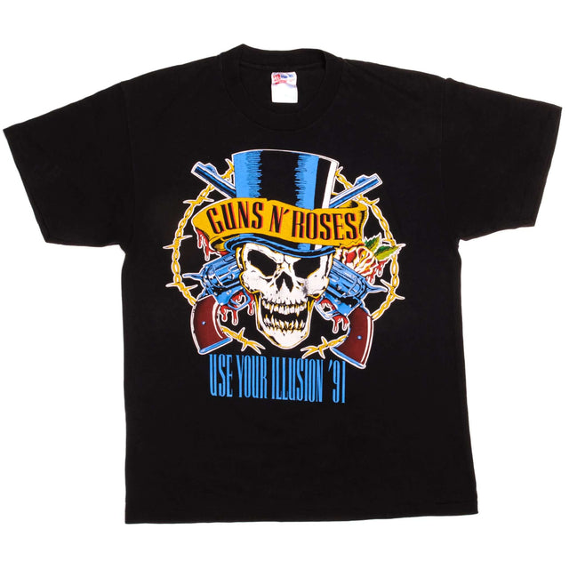 Vintage Guns And Roses Use Your Illusion Tour '91 Hanes Tee Shirt Size Large with single stitch sleeves.