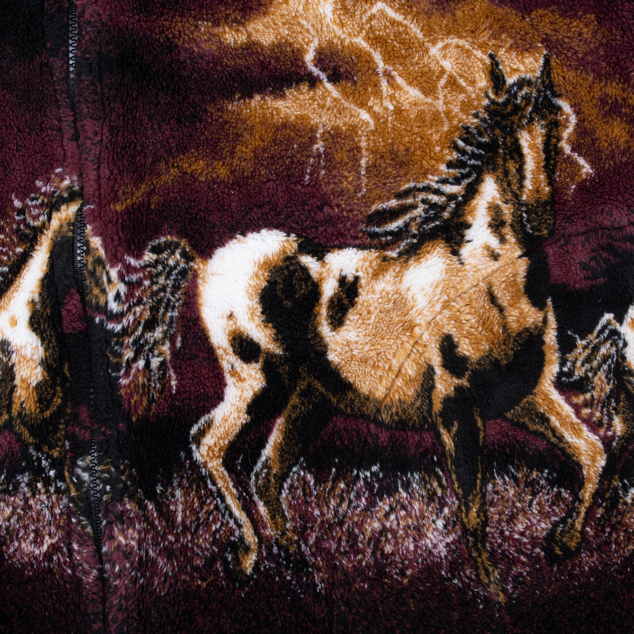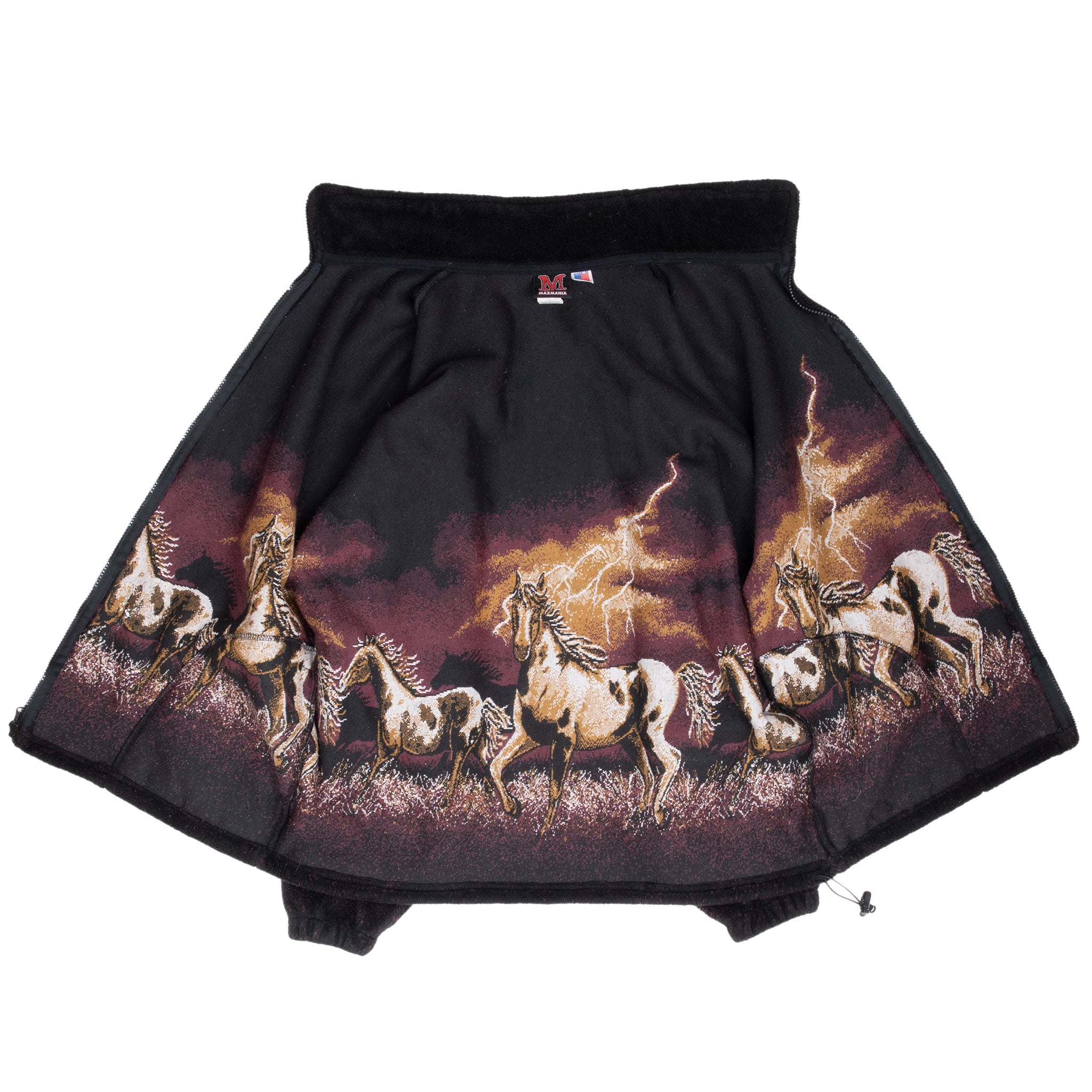 VINTAGE MAZMANIA ANIMAL PRINT WILD HORSES FLEECE JACKET 1990S LARGE MADE IN USA