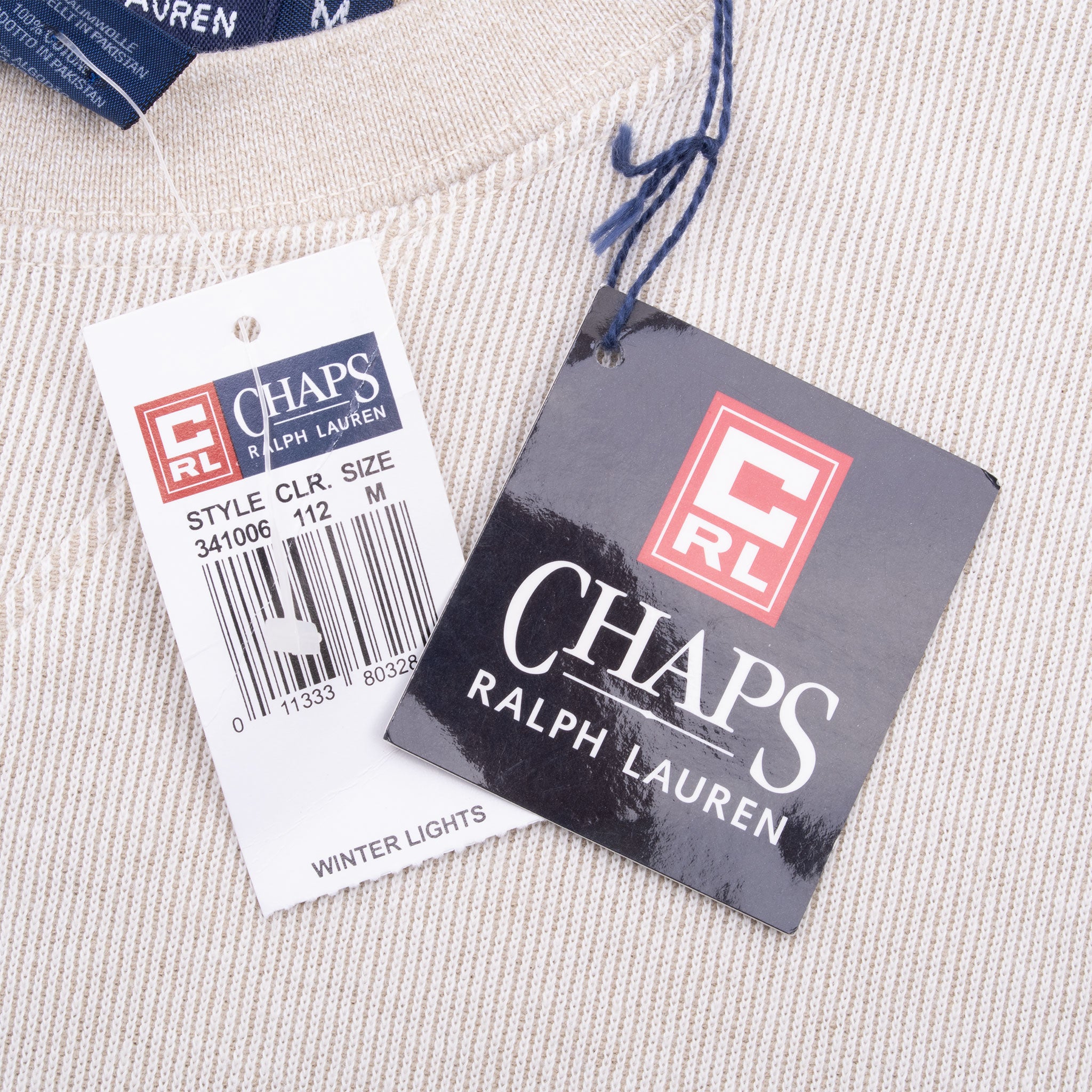 Vintage Chaps Ralph Lauren Ivory Winter Lights Long Sleeve Tee Shirt 1990S Size Medium Deadstock