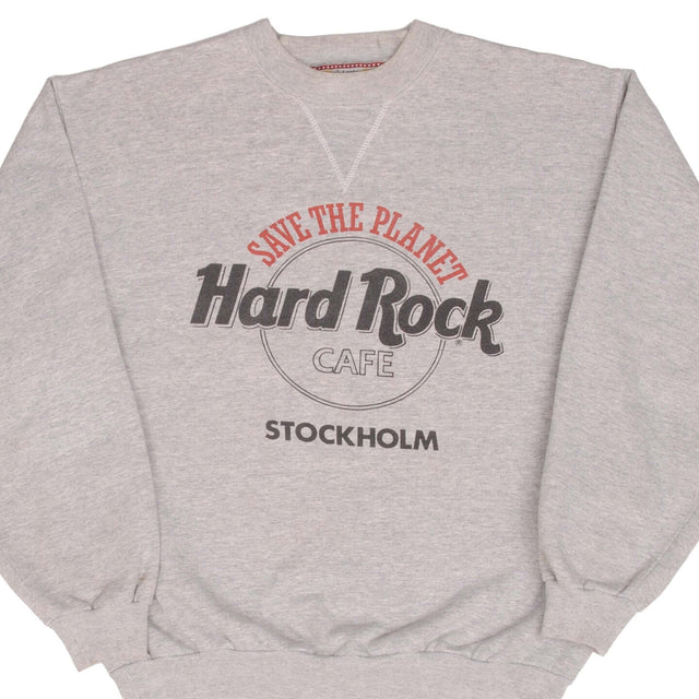 VINTAGE HARD ROCK CAFE STOCKHOLM GREY SWEATSHIRT 1980S SIZE LARGE