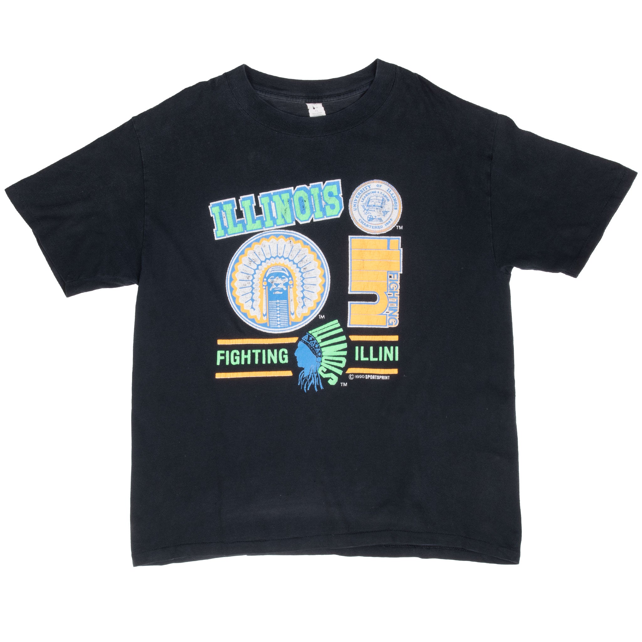 VINTAGE ILLINOIS UNIVERSITY FIGHTING ILLINI 1990 TEE SHIRT LARGE MADE IN USA