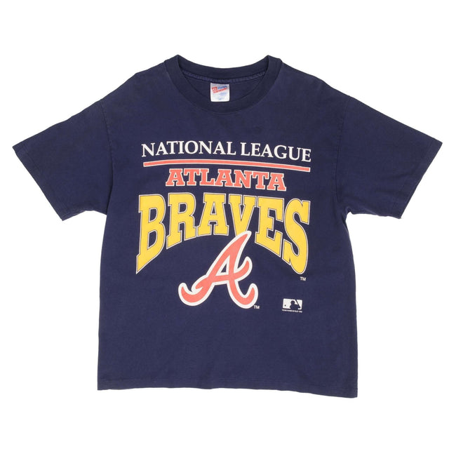 Vintage Mlb Atlanta Braves 1992 Hanes Tee Shirt Size Large Made In USA With Single Stitch Sleeves