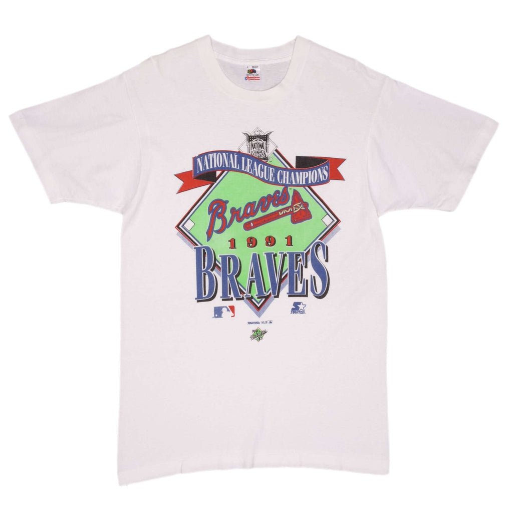 VINTAGE MLB ATLANTA BRAVES CHAMPIONS 1991 TEE SHIRT SIZE MEDIUM MADE IN USA