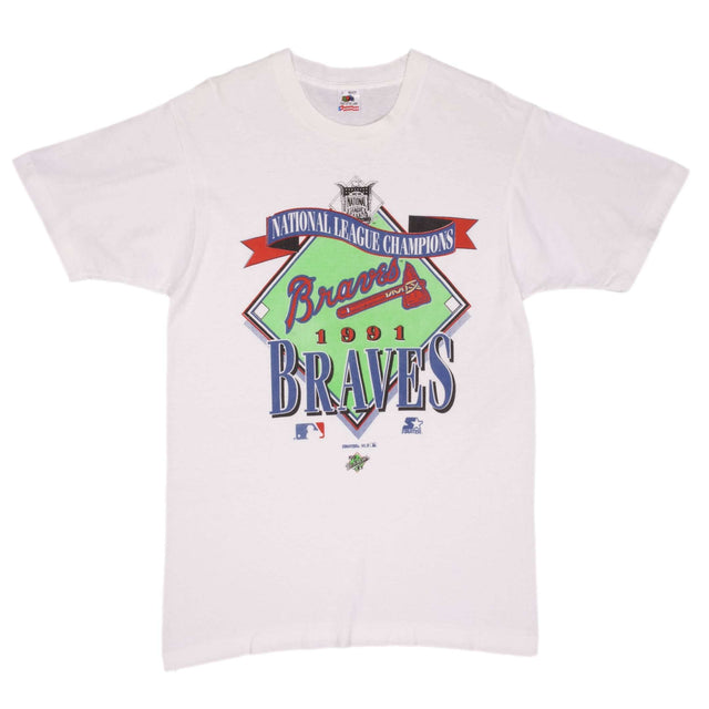 Vintage Mlb Atlanta Braves Champions 1991 Tee Shirt Size Medium Made In USA With Single Stitch Sleeves