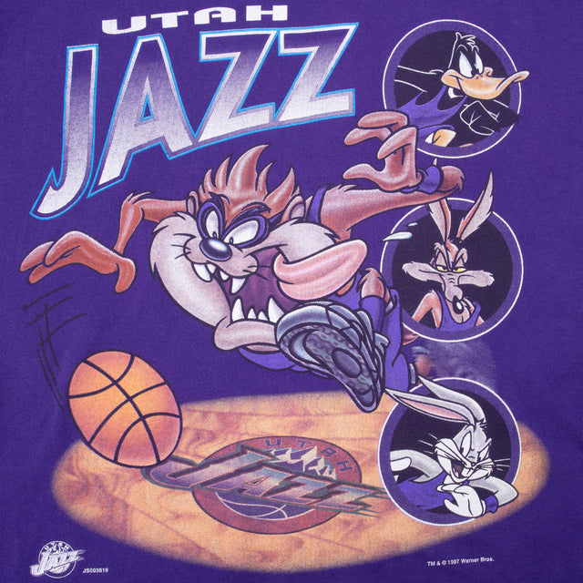 Vintage Nba Utah Jazz Taz Looney Tunes Tee Shirt 1997 Size XL Made In Usa