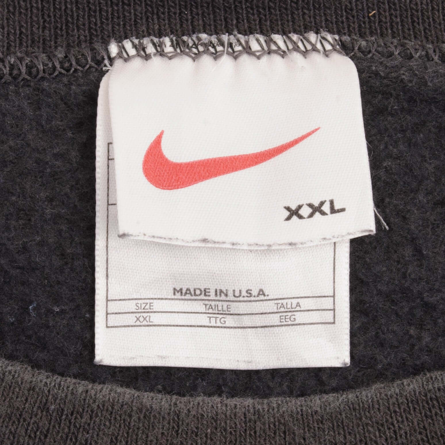 VINTAGE NIKE CLASSIC SWOOSH BLACK SWEATSHIRT 1990S SIZE 2XL MADE IN USA