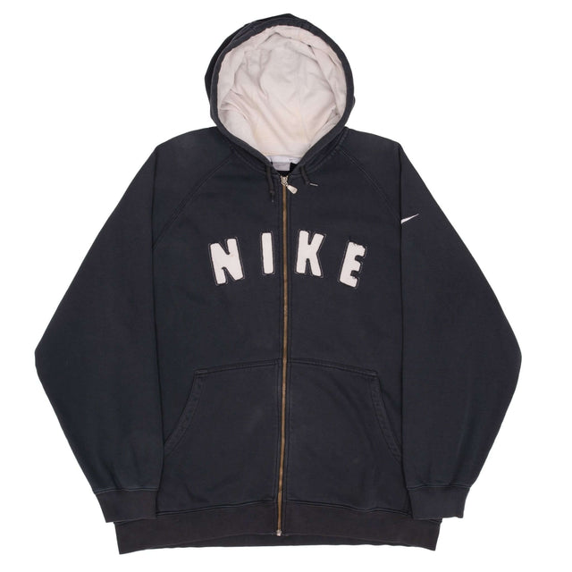 Vintage Nike Spellout Black Full Zip Hoodie Sweatshirt 2000S Size XL