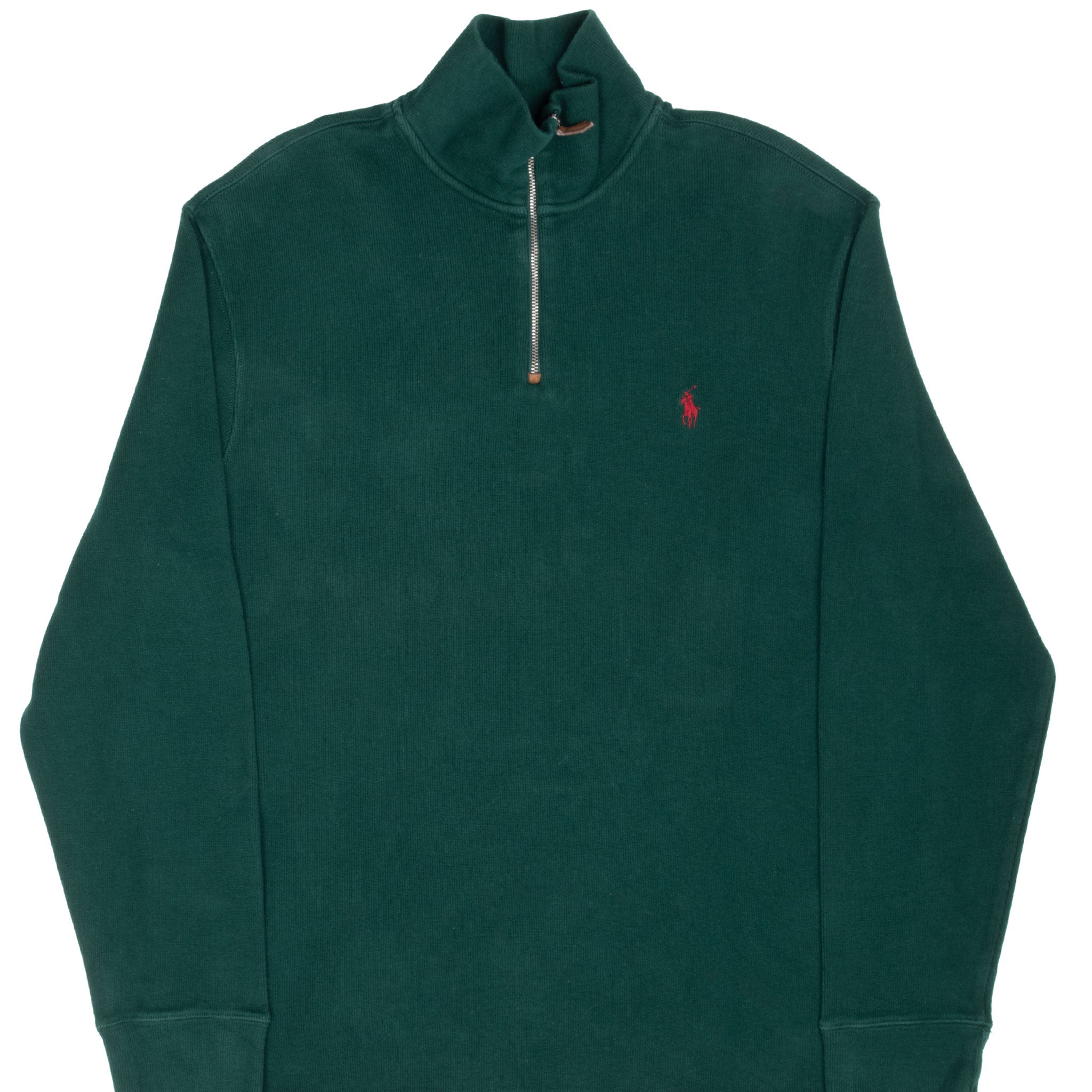 VINTAGE POLO RALPH LAUREN GREEN QUARTER 1/4 ZIP SWEATER 1990S SIZE LARGE