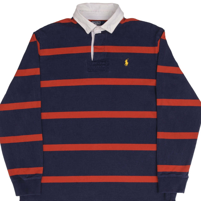 VINTAGE POLO RALPH LAUREN RED & BLUE RUGBY POLO SHIRT 1990S SIZE LARGE