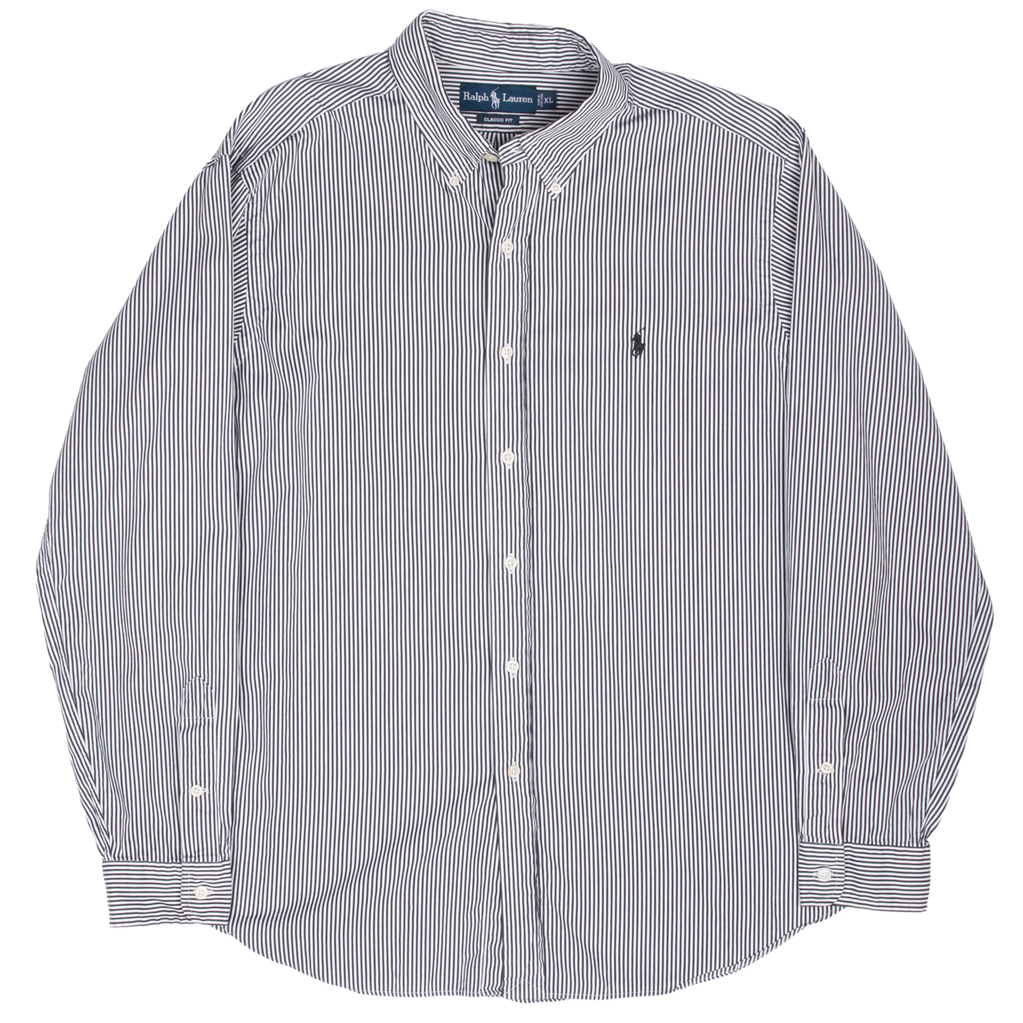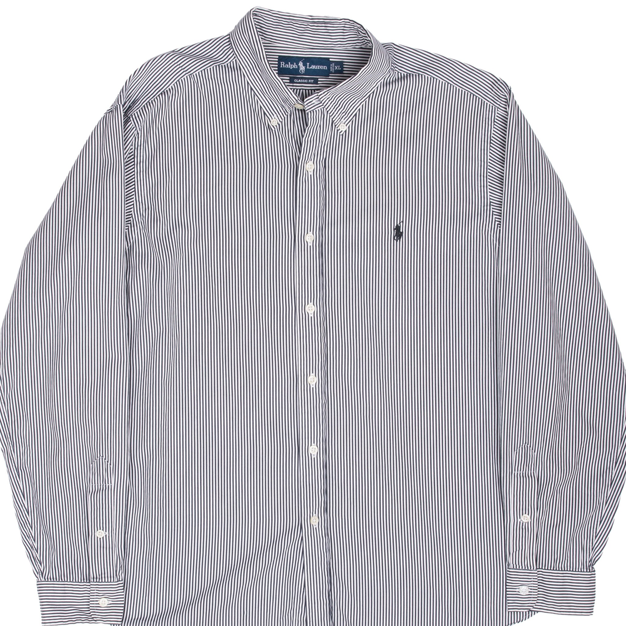 VINTAGE RALPH LAUREN CLASSIC BLACK & WHITE STRIPED SHIRT 1990S SIZE XL